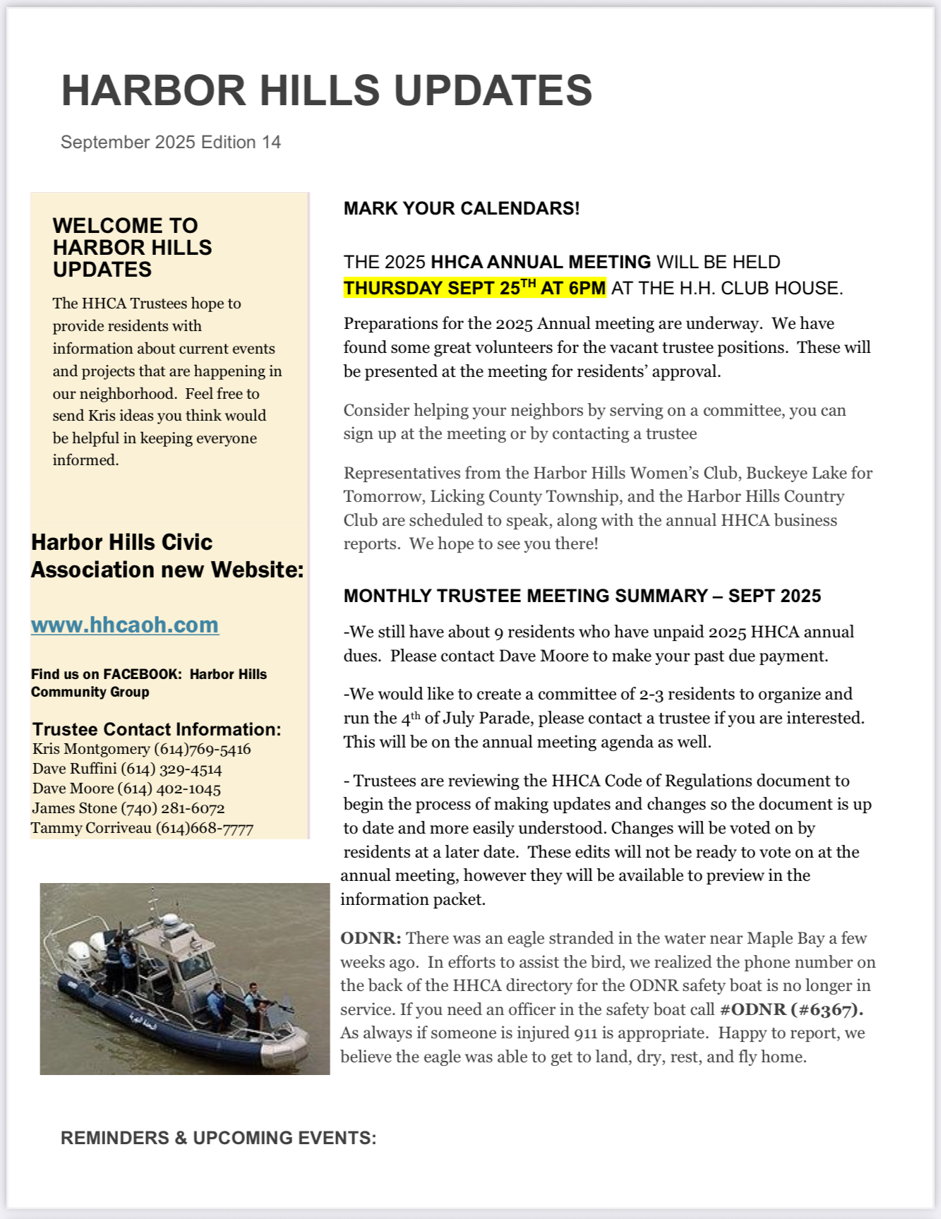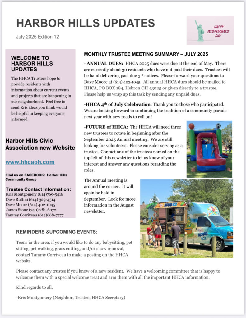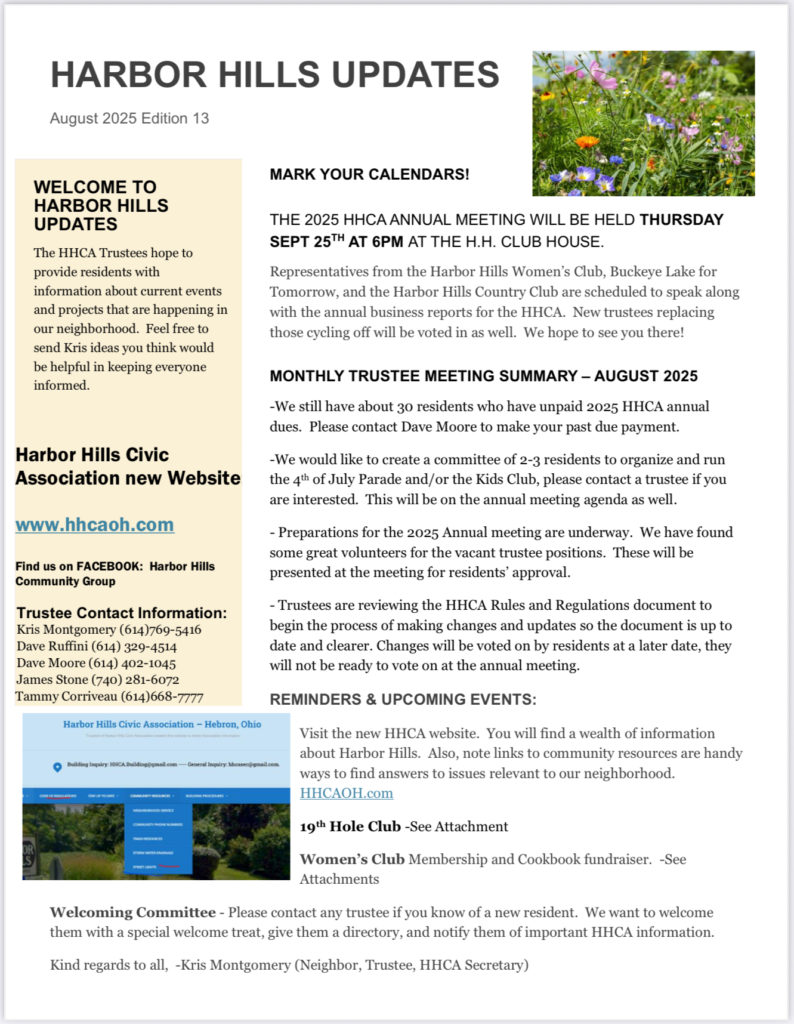 Trustees of Harbor Hills Civic Association created this website to share Association information